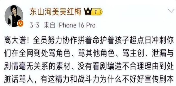 这事儿蹊跷就蹊跷在,原本一部打着群像旗号的剧,竟能被一条制片人的社媒回复搅成风暴眼。