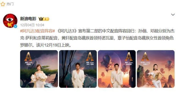 一看到这个情况,许多网友忍不住开玩笑,建议让明星直接为大片配音,票房肯定会飞速上涨。正当这个话题还没退热,不少人发现,又有两位当红演员要给电影配音,结果竟然是《阿凡达3》这部大片。