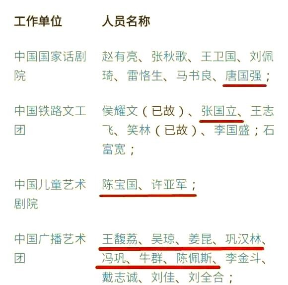 011. 老戏骨与国家一级演员名单