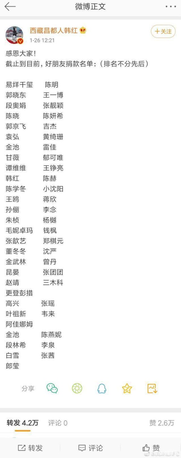 众明星捐款驰援武汉!捐20万的和捐100万的差别在哪里