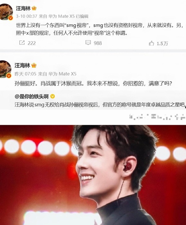 2026年3月,SMG电视剧品质盛典的舞台上星光熠熠。 当肖战凭借在《藏海传》中的表现,捧起“年度卓越品质之星”的奖杯时,社交媒体上,粉丝和娱乐媒体一片欢腾,许多人沿用往年的习惯,称他为新的“SMG视帝”。 然而,这份喜悦还没持续多久,一个熟悉的身影又带着熟悉的论调出现了。 编剧汪海林几乎是在第一时间发文,矛头直指“视帝”这个称呼。 他斩钉截铁地表示,官方奖项名称里根本没有“视帝”二字,用这个词是“沐猴而冠”。 有意思的是,对于同场获得“年度卓越品质之星”(女演员)的孙俪,被称作“视后”,汪海林却觉得“可以接受”,认为她够格。 这一幕,是不是有种似曾相识的感觉? 好像在过去几年里,只要肖战有个什么动静,汪海林老师的“专业点评”总会如期而至。 这次,连一个非官方的、媒体和粉丝用了多年的习惯称谓,都能成为他激烈批评的靶子,这到底是对原则的坚持,还是选择性开火?