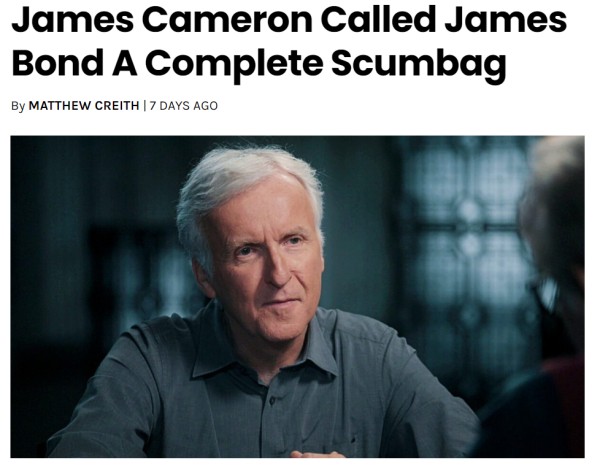 根据Geek Tyrant报道, 《泰坦尼克号》 导演詹姆斯·卡梅隆,始终坚信詹姆斯·邦德这个角色是一个“渣男”,不值得上映。基于邦德与酒精、女性的关系,卡梅隆并不像国际观众那样关心该系列的动作片。他不喜欢这个电影角色,因为他不喜欢邦德沉溺于玩弄女性的方式,特别是他觉得007系列的邦德,是男性观众喜欢的一种幻想型角色。