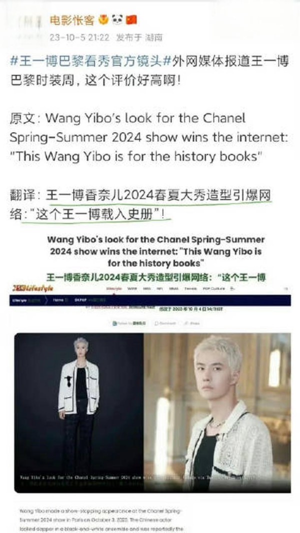 其次,是他将中式元素注入高奢语汇的能力。香奈儿大秀中融入了云纹刺绣,LOEWE造型引入了水墨意象,这种“东方审美”正成为2026春夏的设计主线。外媒惊叹他“以东方面孔重新诠释法式美学”,法媒则称其笑容“刷新巴黎春日甜度”——王一博的出现,不只是多了一张东方面孔,而是提供了一种新的审美坐标系。