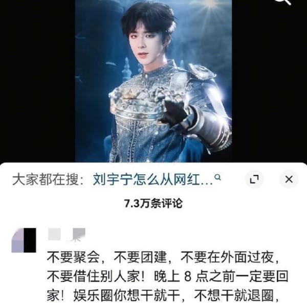 刘宇宁也差不多,评论区里也有人叮嘱:“别乱出门喝酒