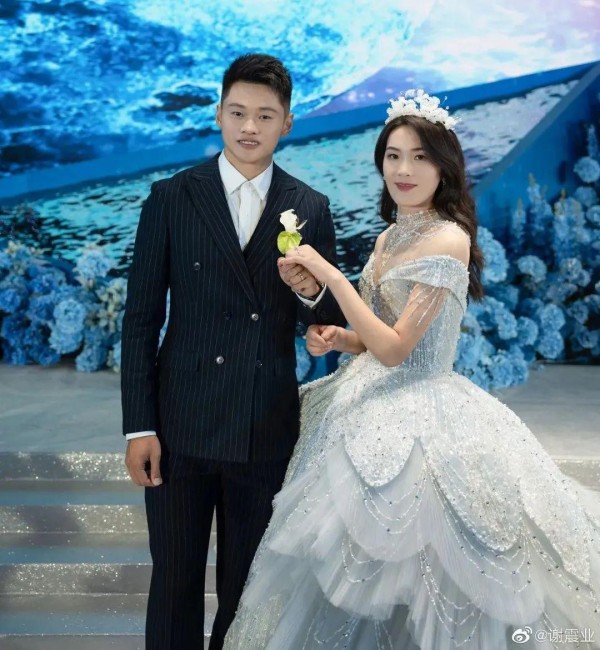 去年东京奥运会后,谢震业曾经暗示婚讯将在今年到来。今年9月,谢震业邀请不知情的陆敏佳来到一座体育场,向女友求婚成功。