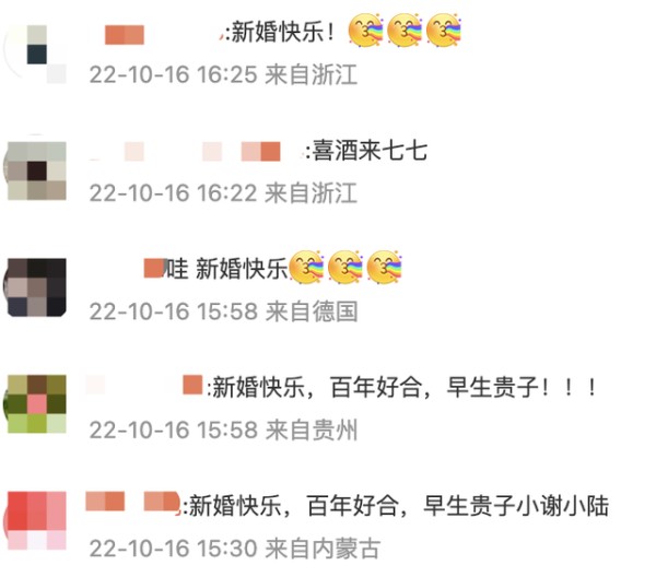 10月17日上午,谢震业再次发微博称:“我们结婚啦!我曾经说过,爱情和体育一样,爱了就是一生。我对你的爱也是如此,你是我的初恋,也是我一辈子的热恋,这一生只爱你一人!”