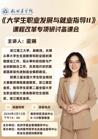 本次研讨会为全校就业指导课程的迭代升级绘制了清晰的“路线图”。通过专家把脉与深度对话,课程团队进一步厘清了将医学特色融入生涯教育的实施路径。下一步,学校将以此为契机,加速推动课程内容与大健康产业需求的精准对接,让职业规划课真正成为助力杭医学子高质量就业的“助推器”。