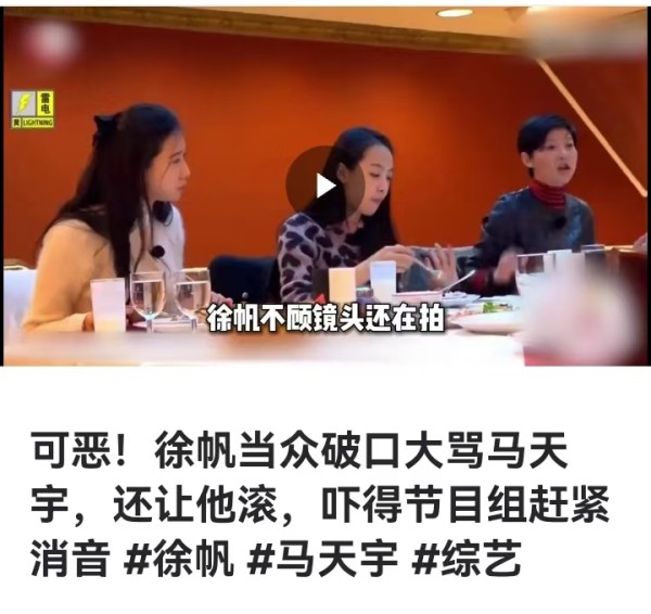 徐帆可能真的被老公刺激得有点不太正常了。综艺节目里不顾还有摄像机和当场的明星们,泼妇骂街一样对马天宇用脏话骂人,一点形象都不顾。