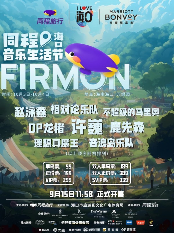 DoNews9月14日消息,9月13日,同程旅行宣布将于10月3日至4日在海南海口举办海口同程音乐生活节。本次音乐生活节将于15日正式开票,许巍、赵泳鑫、鹿先森等明星加盟。现场设有各类餐饮美食区、特色市集区以及游戏互动区,带给乐迷们更加丰富的综合玩乐体验。