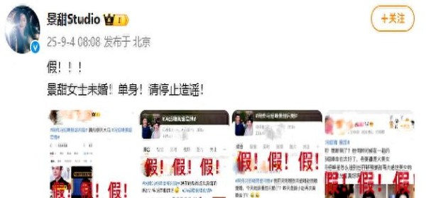 景甜工作室更直接:“假!景甜女士未婚!单身!”
