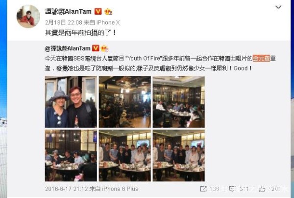 就在大家快要遗忘她的时候,谭咏麟近日晒出了和她在2年前拍摄的同框照,并配文称赞她像是吃了防腐剂,美得像一位少女,相信大家很好奇照片中的金元萱到底是什么样的吧,能够得到校长如此高的评价。