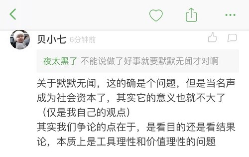 关于第四点其实疑问比较多,我的想法是,如若本职工作做得好,那么她的所得收入恰如其分,做慈善获得好名声也是应得的。但是这里的确有一个问题,谁来判定这个收入“恰如其分”,脸也是一种资本(参见ycy),也会带来很多收益,名声也是一种资本,她参加了慈善的确会让更多人知道这个活动,或是让粉丝也加入。所以这个点我的确考虑不周。
