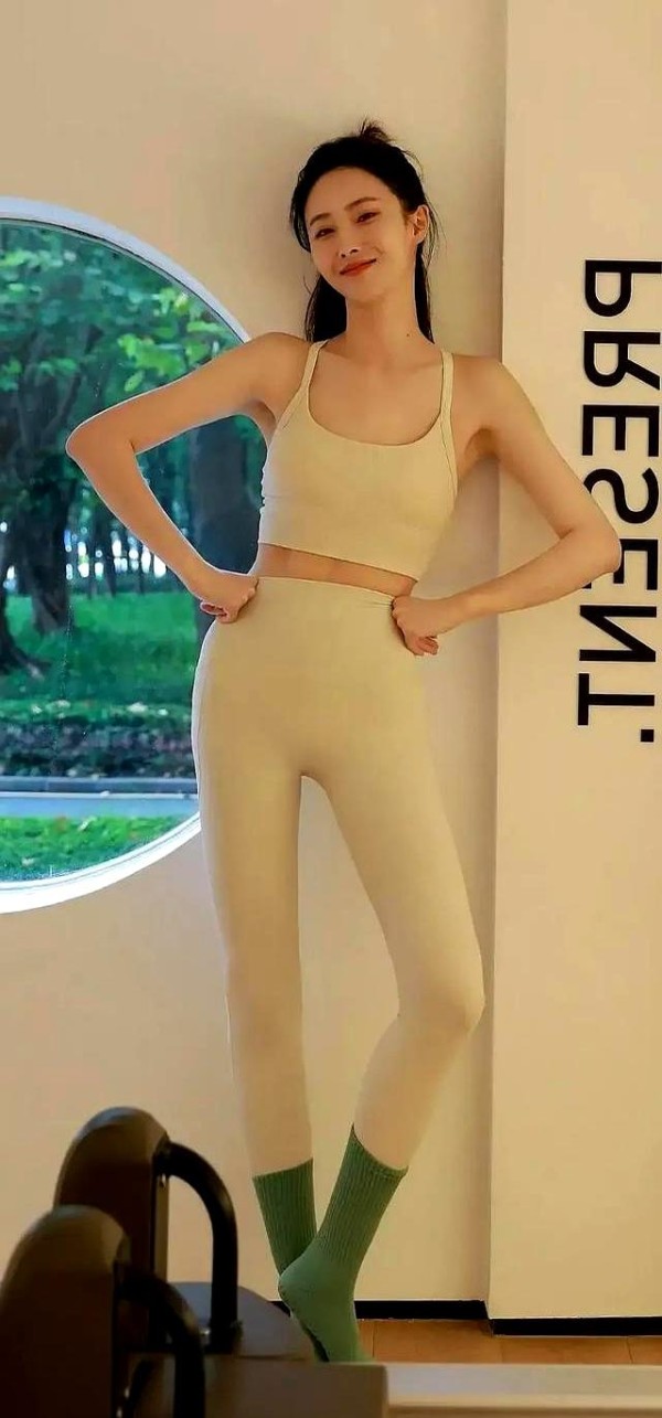 瑜伽练出好身材,徐璐晒瑜伽裤美照,白皙水润、紧致自在