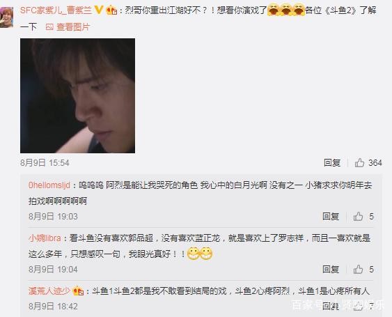 然后罗志祥更新微博说,阿烈回来了,我们可以知道这是《斗鱼2》,杨梓鑫评论:“老大好,老大,请吩咐。”罗志祥便回复说:“阿豹那小子又开始闹事,我们走。”不得不说的是罗志祥真的很搞笑,但是他的演技也非常的好,他就是最帅的人。你们的那个烈哥又重新重出江湖了, 在《斗鱼2》这部电视剧之中,罗志祥的演技非常的好,他饰演的这个角色真的能让人哭死,网友都纷纷表示,希望罗志祥能拍更多的戏,希望他能给我们呈现更好的作品。