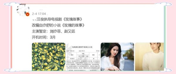 《玫瑰故事》预计将在今年3月启动拍摄,预计明年将与观众见面。对于这部备受期待的电视剧,你是否已经迫不及待想要一睹为快了呢?