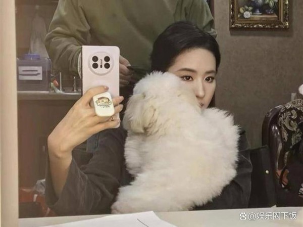 这还没完,照片里还有一张她工作前的化妆照,怀里抱着她那只心爱的小狗,笑得特别开心。 你就感觉,这个人吧,工作的时候是神仙姐姐,不工作的时候就是个在家喝汤、撸狗的邻家女孩,那种反差感特别真实。 现在网上不是总贩卖颜值焦虑吗? 看到刘亦菲这样,我突然就觉得,那种紧巴巴的、全靠医美和浓妆撑着的美,真的比不上这种从内到外透出来的、松弛又健康的好状态。