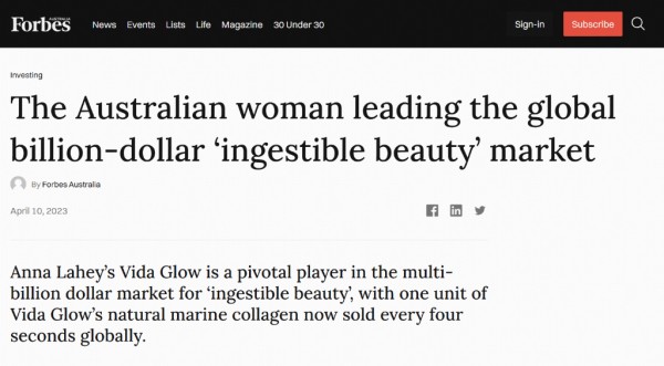 Glow 的意义早已超越单一品牌。《福布斯》曾以《Vida Glow 如何建立起胶原蛋白帝国》为题进行深度报道,文中指出,Vida Glow