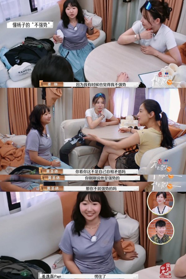 之后麦琳又被黄圣依贴脸开大,因为麦琳明明肯定了杨子很强势,但她又说懂杨子说自己“不强势”,说杨子在说的时候她懂,她也觉得自己不强势,然后黄圣依反驳麦琳自相矛盾,反问麦琳她刚刚明明肯定了杨子强势,那她不就是强势的?这话又把麦琳说愣住了,黄圣依这波干得漂亮!可惜麦琳永远不会觉得自己有问题,明明之前看到杨子硬拉黄圣依看月亮时反思了,这时又被黄圣依提醒了,但她还是对李行亮很强势,并且态度恶劣。
