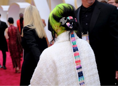 当天碧梨的发型也十分独特,绿色的发色夸张大胆,也非常符合碧梨不走寻常路的性格,绿色也是前段时间非常流行的发色,作为一个个性鲜明的女生,碧梨一向都是非常与众不同的,香奈儿的发带五颜六色也十分漂亮,给造型带来一些细腻的小心思。
