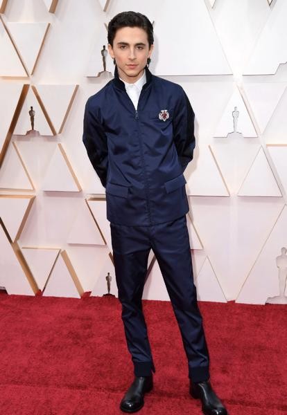 Timothée Chalamet甜茶在典礼上身穿一件Prada普拉达蓝色再生尼龙套装,光滑的面料看起来非常有质感,加上甜茶精致的长相,看上去就感觉是一位高贵优雅的王子,蓝色简单高级,也非常适合男人在比较重大的场合上穿着,看起来既稳重又没有黑色的沉闷压抑。