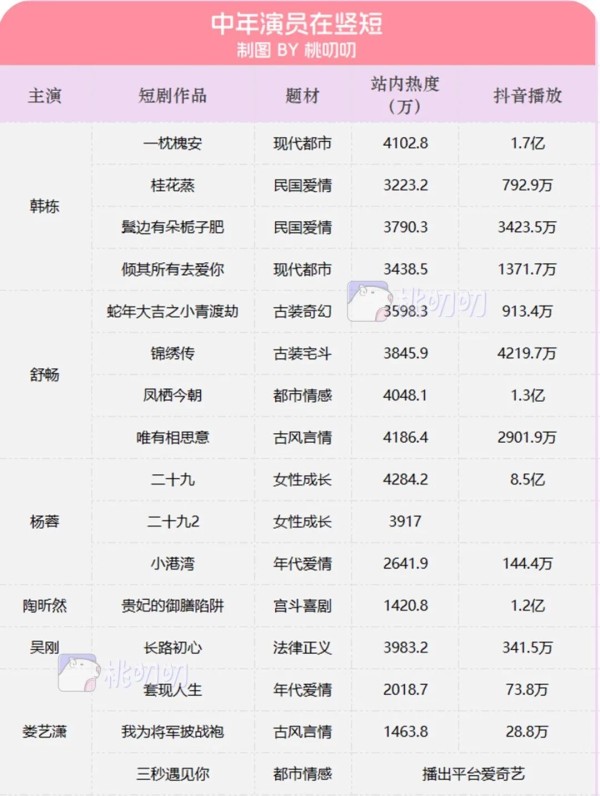 据桃叨叨观察,目前内娱艺人的生态,正在发生一场大迁移和巨变。像万茜、严屹宽、孔雪儿、朱正廷都在积极拍摄中短剧,而吴刚、娄艺潇、韩栋做竖短风生水起,郭宇欣逆流而上闯长剧也摘得美味果实。