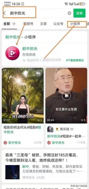 1.打开某V,搜suo“剧中拾光”小程xu。