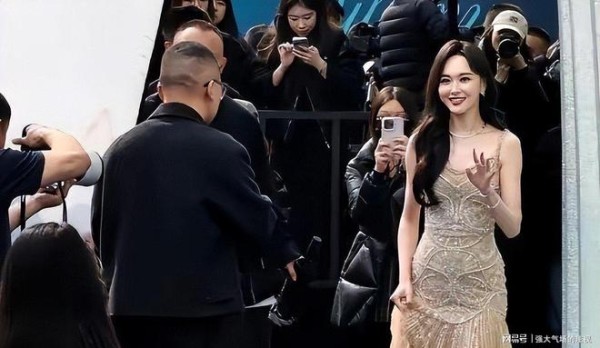 唐嫣一出场就备受关注,她的造型可以说是全场最吸睛的,香槟色的钻石长裙,加上珍珠项链。
