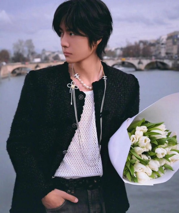 不过这份宠爱也不是白给的。每次出镜,他都把品牌的调性带得恰到好处。比如在 2025/26 秋冬高级成衣那场,他穿亮片刺绣花织斜纹软呢外套,搭配 Coco Crush 珠宝,低调里藏着存在感,网友说这是法式优雅和东方清冷的混搭。