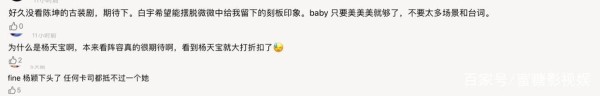 对于杨颖出演《风起陇西》,很多网友都留言:baby只要美美就够了,不要太多台词。