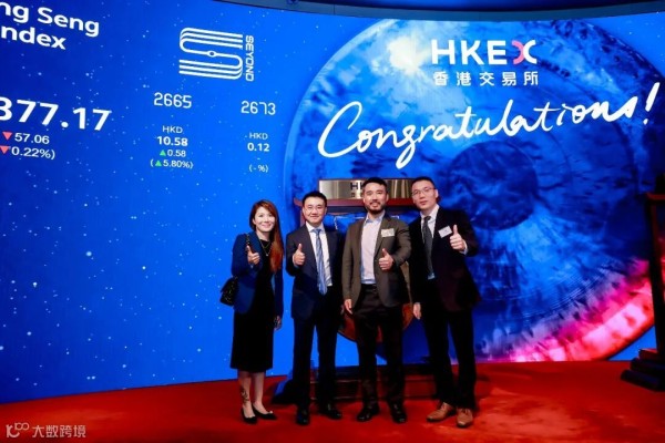 蔚来资本管理合伙人朱岩(右二)、合伙人吕元兴(右一)、董事总经理凌雯(左一)与图达通创始人鲍君威(左二)在上市仪式现场合影。作者|Stone Jin