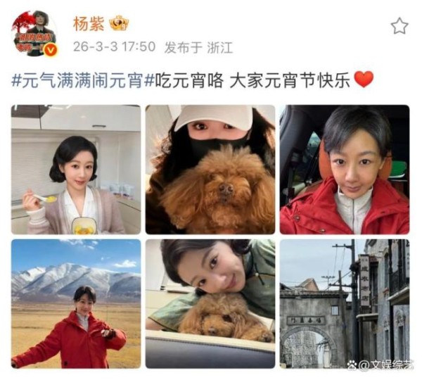 关注杨紫元宵发董竹君白菊 角色宇宙的深度告白!2026年的元宵节,杨紫在社交媒体上分享了一组九宫格照片,引起了粉丝们的热烈反响。照片中,她身着民国旗袍,扮演坚韧的董竹君;穿上巡山警服,展现高原风霜中的白菊;还有镜头前的小狗piupiu,三个截然不同的形象同框,将“元宵喜乐”四个字演绎得淋漓尽致。