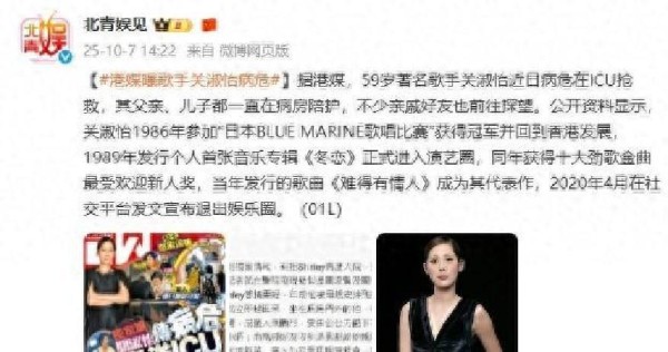 一则重磅消息横空出世,差点把我这老编辑的心思都吓没了港乐时代的那位“不按套路出牌”的关淑怡,如今居然病危在ICU里抢救?!要知道,这位“歌坛双后”之一,早些年可是万千歌迷心中的女神,风头一时无两。可昨日高光璀璨,今日却陷入生死关头。最戳人心的,是她的儿子关浚贤——小伙子在医院长椅上一声不吭地抱膝痛哭,任外面的世界多热闹,ICU外却只剩下“生死未卜”的沉默寂静。说真的,人生能有几回像关淑怡这样大起大落?她的故事,总让人感慨世事无常,成功与失意不过一转眼。问题来了,曾经的天后如何走到今天?这场人生戏码里,关淑怡究竟把什么牌打得太绝?设问留给大家,咱们慢慢扒。