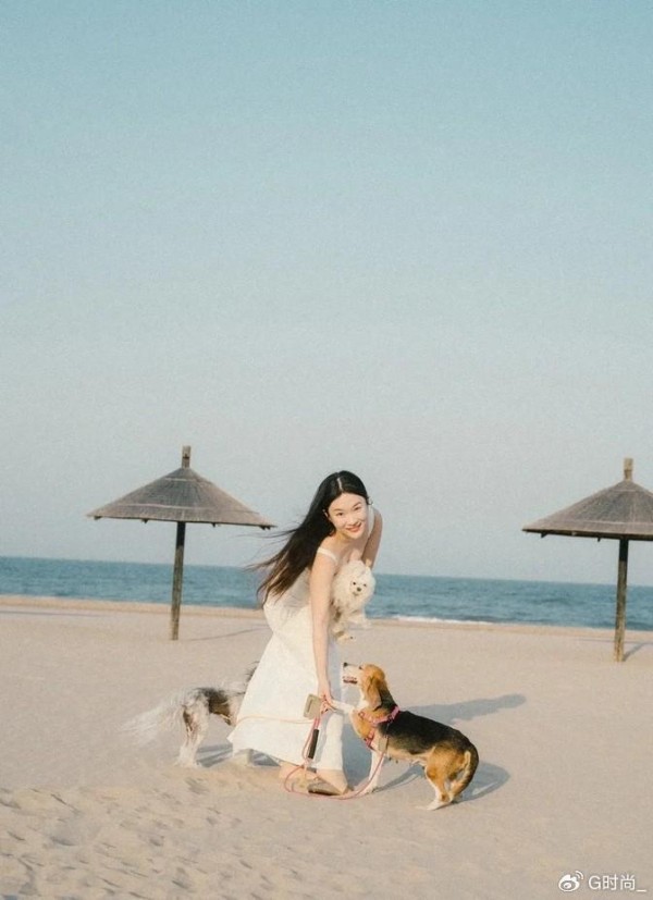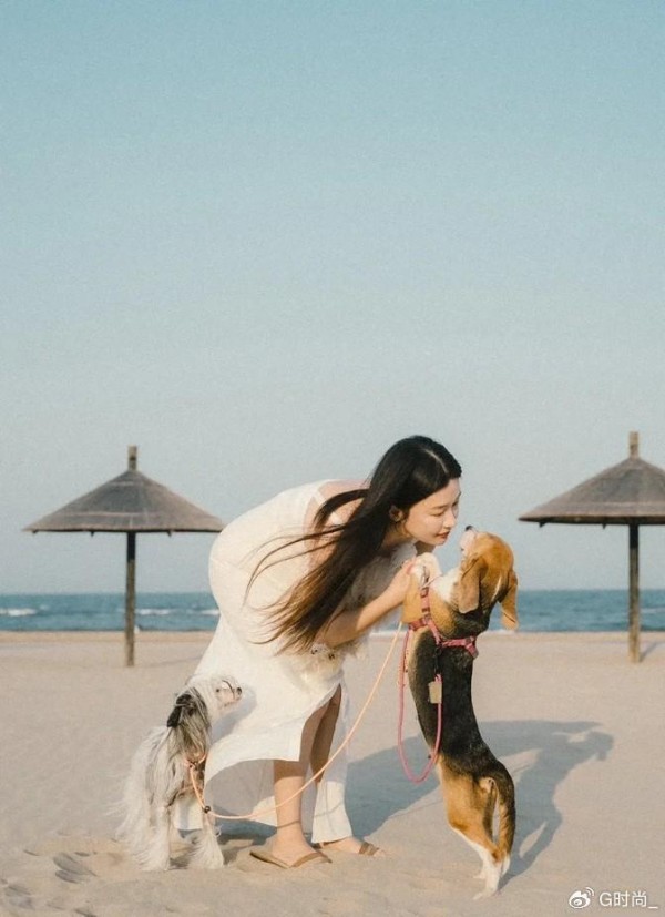 不过说真的,现在的明星度假都这么会玩儿了吗?带个宠物出门,都能玩出新花样。我寻思着,要是我家那只整天躺尸的橘猫,怕是连沙滩都不愿意踩一脚吧?
