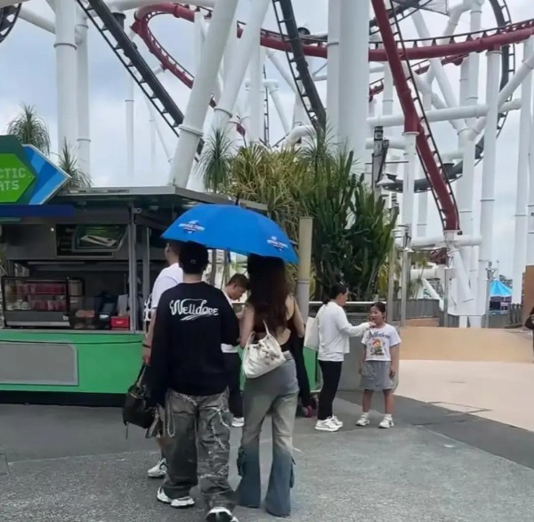 黄晓明新加坡度假,身边女伴青春靓丽,俩人共伞同行互动如恋人