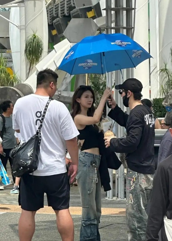 那天他穿得特别低调,宽松的休闲T恤加一条深色裤子,颜色稳妥又不抢镜。现场看过去,阳光有点毒,地面热得像在冒气泡,他却全程不松手,一直把伞遮在女伴上方。偶尔中途有人经过,他会稍微侧身,把她推到阴影里。那种细节上的照顾,人一眼就能感受到。