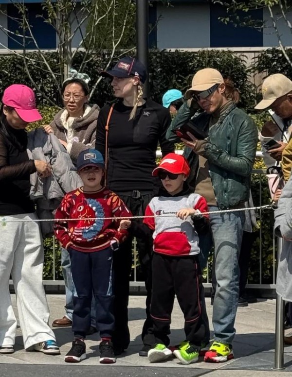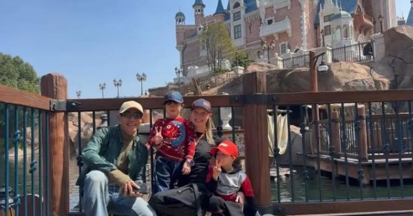 撒贝宁和妻子李白带着6岁龙凤胎儿女游迪士尼,网友偶遇晒出全家福,幸福感满满