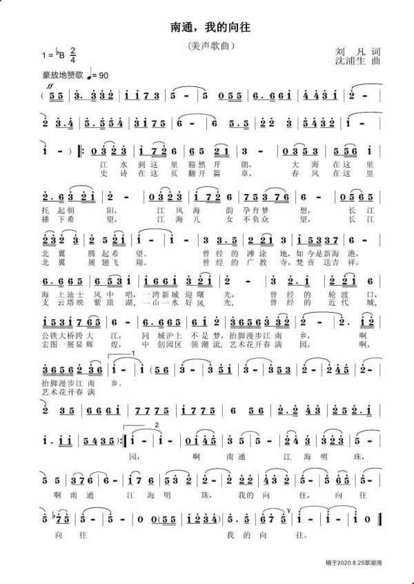 网址:原创歌曲《南通,我的向往》(刘凡词,沈浦生曲,何志勇演唱) https://mxgxt.com/news/view/2053381