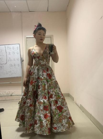 她的长相可爱,性格阳光,她极具喜感的萌系长相自带亲和力,尤其是她的笑容灿烂而自信,充满积极健康的个人气质,她穿上碎花吊带裙,发型弄成高丸子头发型,身上散发着自信强大的气场穿上后显得非常合适美丽,丝毫不会让人觉得不符合她的气质。