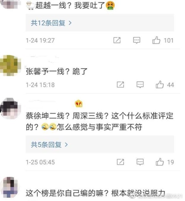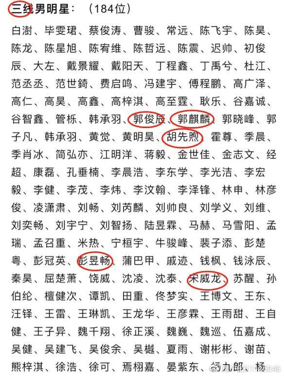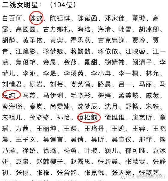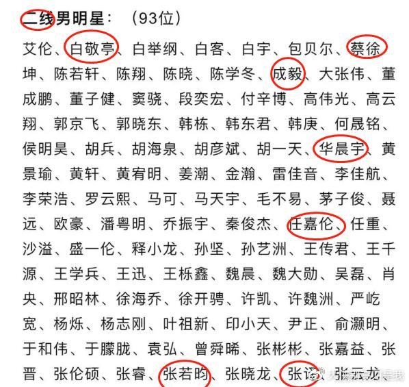 到了今年,这份榜单依旧如约放出,这次的争议性就更大了,在圈中明星的咖位有明显提升的情况下,好几位被观众们认为应该已经闯进了一线的艺人,全都被排在了二线的位置,甚至有些咖位应该上升的,竟然被安排到了三线。