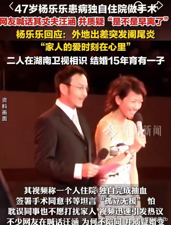 • 杨乐乐独自住院:2025年10月,杨乐乐因外地出差突发阑尾炎住院,视频中她独自挂吊瓶,无家人陪护。