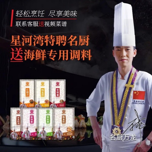 星河湾环球海鲜确定海鲜全国品牌战略,为进一步有效提升和塑造品牌形象,使海鲜一跃成为全国海鲜知名品牌,2019年顺利签约国际名厨万龙,成为星河湾产品研发顾问及厨艺大使,同时星河湾开始紧锣密鼓的制作全新的电视美食节目,万龙将亮相厨房,展现新时代时尚大厨的魅力,演绎海鲜美食分享体验,用厨艺来征服人们味蕾。并将目标群体转向更有消费能力和品牌意识的社会中坚消费阶层,同时年轻化的星河湾将会更加有活力和生命力。