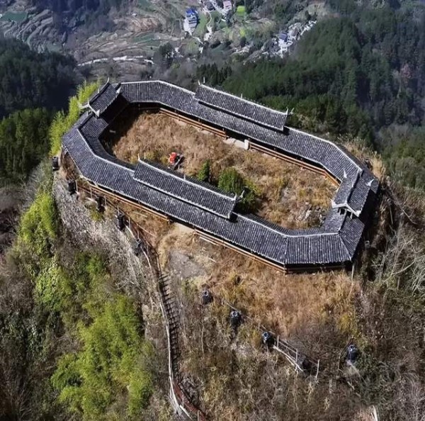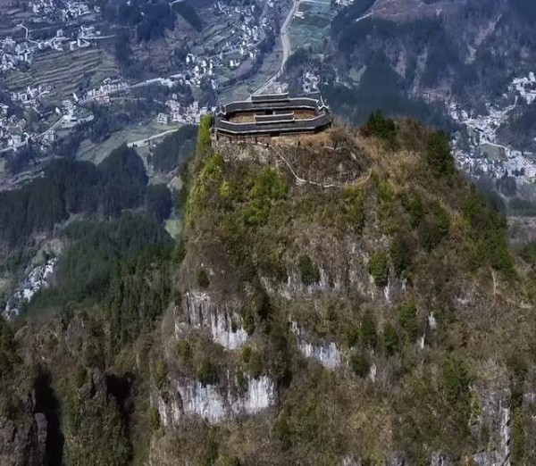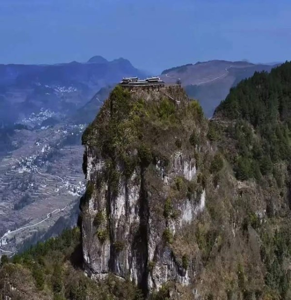 而在贵州群山深处,一座孤峰之巅,竟然真实存在着一个与之神似的四合院落。远远望去,它如同一颗被遗落在绝壁上的棋子,沉默,孤傲。