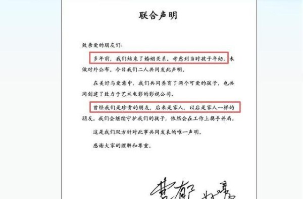 这些年看的画面太多——红毯、剧照、孩子背影。真到最后,只剩那张联合声明:黑底白字,两人签名在同一行。