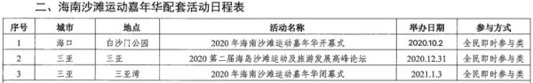 活动日程表来了!2020年海南沙滩运动嘉年华10月1日开启