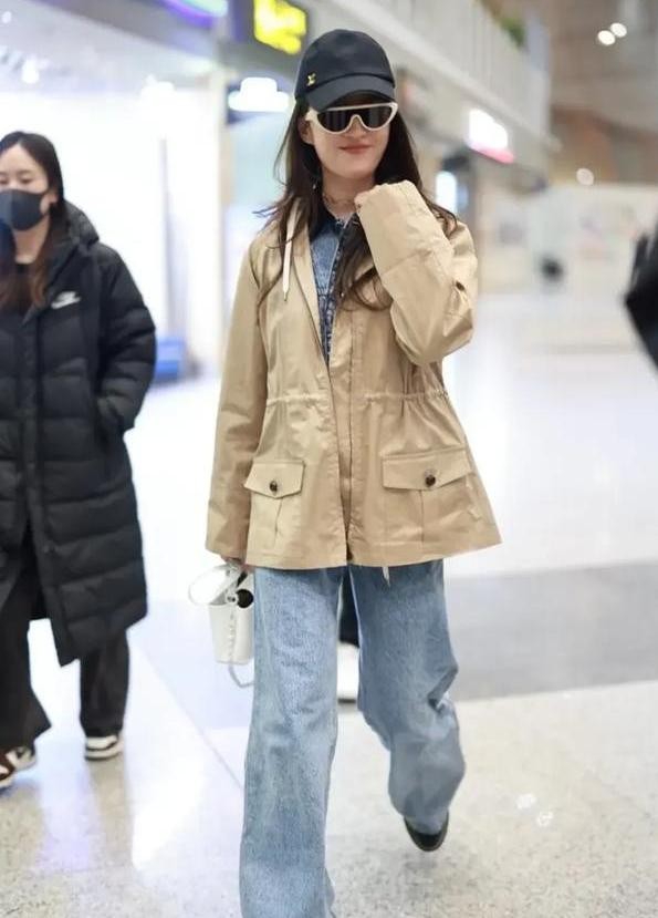 刘亦菲的穿搭风格向来以简约大方见称,这次的选择更是贴合她清新脱俗的气质。米色风衣的剪裁合体,展现出她优雅大方的一面。搭配的牛仔高腰阔腿裤,则展现了她对时尚的独特理解和品味。整体造型简约大方,不失高级感,给人一种清新舒适的视觉感受。