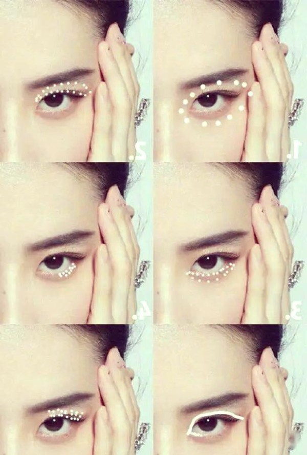 运用哑光白色在下眼内眼脸处轻轻一抹,瞬间提升眼神的清澈度。