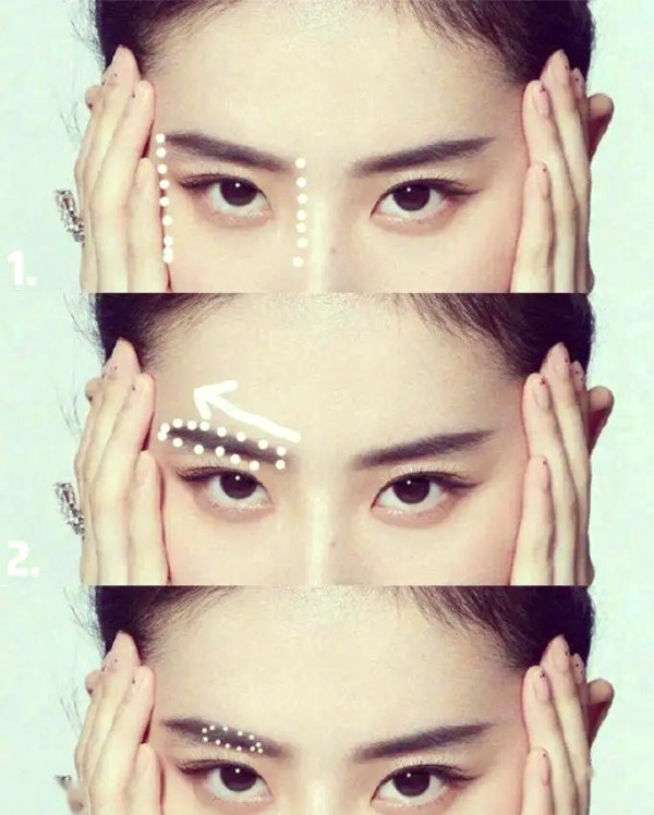 在选择眉色时,应选用浅且黑的颜色,只需在图示区域进行加深即可。