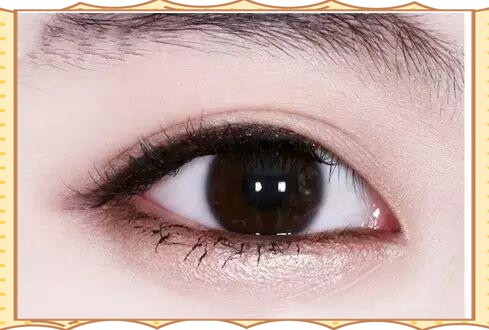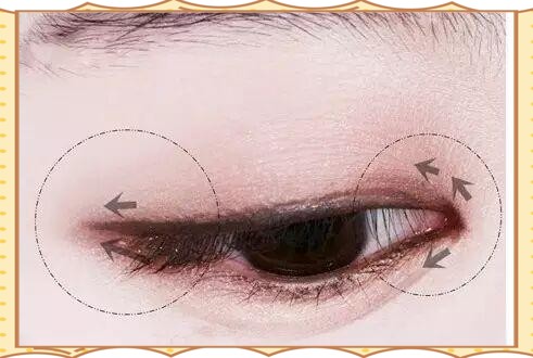 第三步,紧接上一步,使用深棕色眼影在眼头与眼尾部分进行涂抹。涂抹时需确保在图示范围内操作,通过渐变层叠的方式,进一步增强眼睛的立体感。深棕色眼线笔描绘眼尾和眼头,旨在为眼妆增添更为鲜明的轮廓和立体感,而深棕色的选择则让眼睛流露出更为温柔的韵味。在完成眼线的描绘后,我们接下来要处理睫毛。首先,用睫毛夹轻轻夹翘睫毛,使其呈现出自然的弧度。随后,刷上适量的睫毛膏,睫毛处理自然浓密,打造出浓密且纤长的效果。同时,也要注意避免睫毛膏的涂抹过程中出现结块现象,以确保最终呈现的效果既自然又美观。