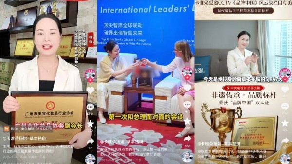 仅是“岭南草本护肤传承人”这一点还不够,卡唯朵擅长借助各种官方影响力为自己的品牌做背书。比如受邀参与央视某节目,展示沙利文对品牌的认证…而这些专家背书、官方媒体报道等,极大地强化了受众群体对品牌的信任。