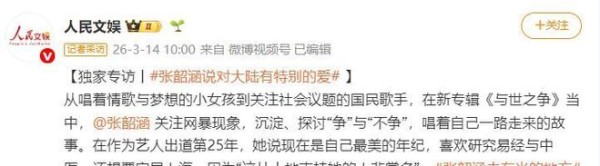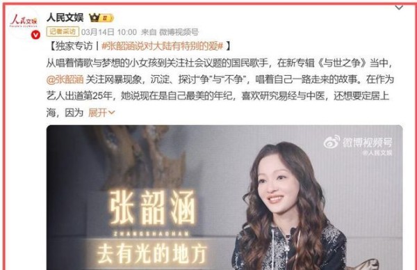 人民文娱|独家专访:张韶涵说对大陆有特别的爱